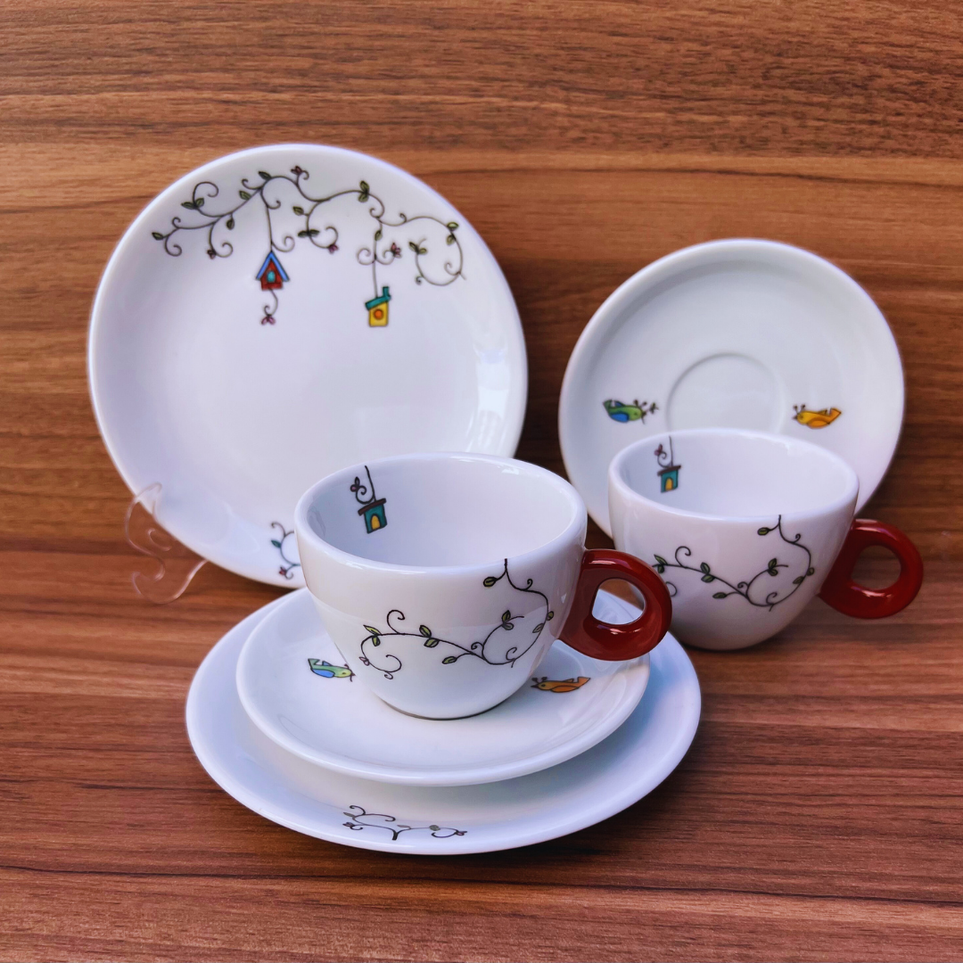 Variações: cor da alça das xícaras