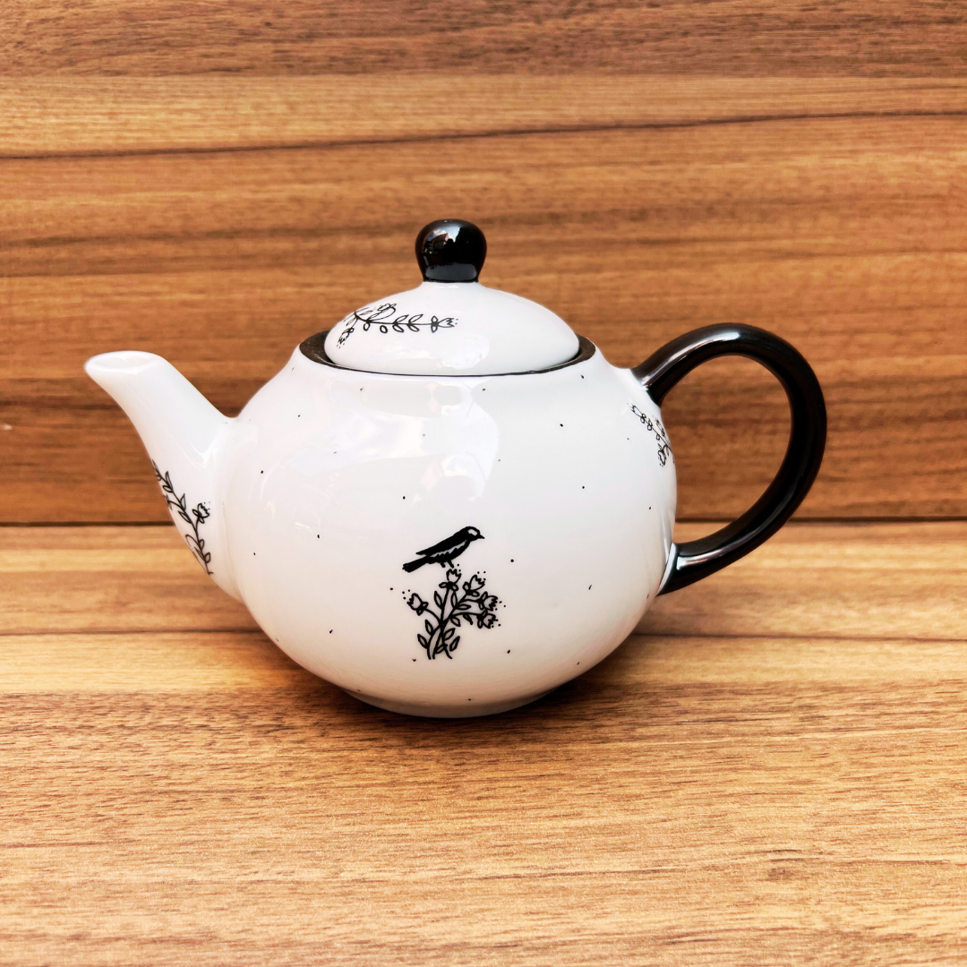 O Bule Pássaro Preto é ideal para chá ou café trazendo charme à mesa e delicadeza às pausas do dia.