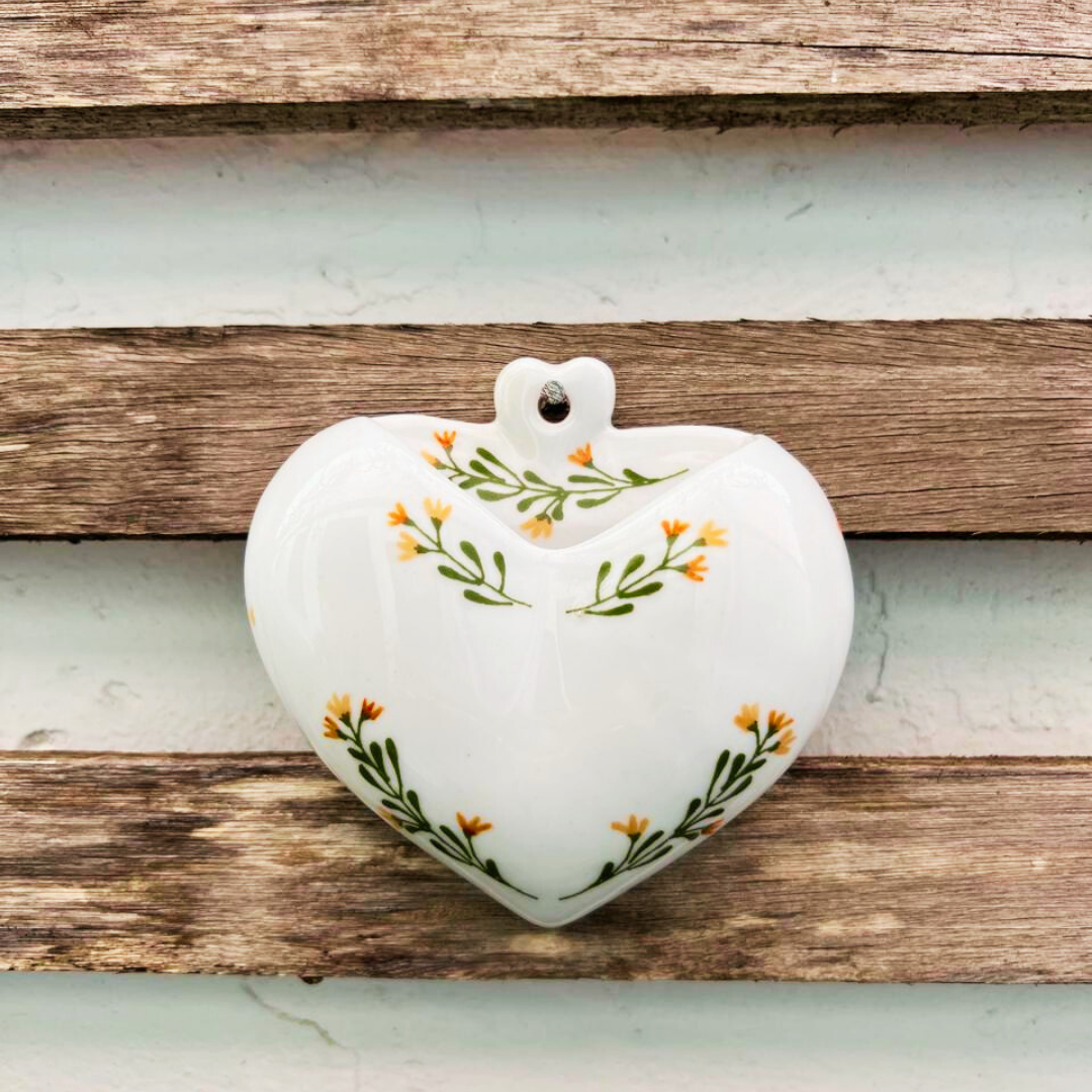 Vaso de parede em forma de coração, um toque de charme para pequenos arranjos ou flores únicas.